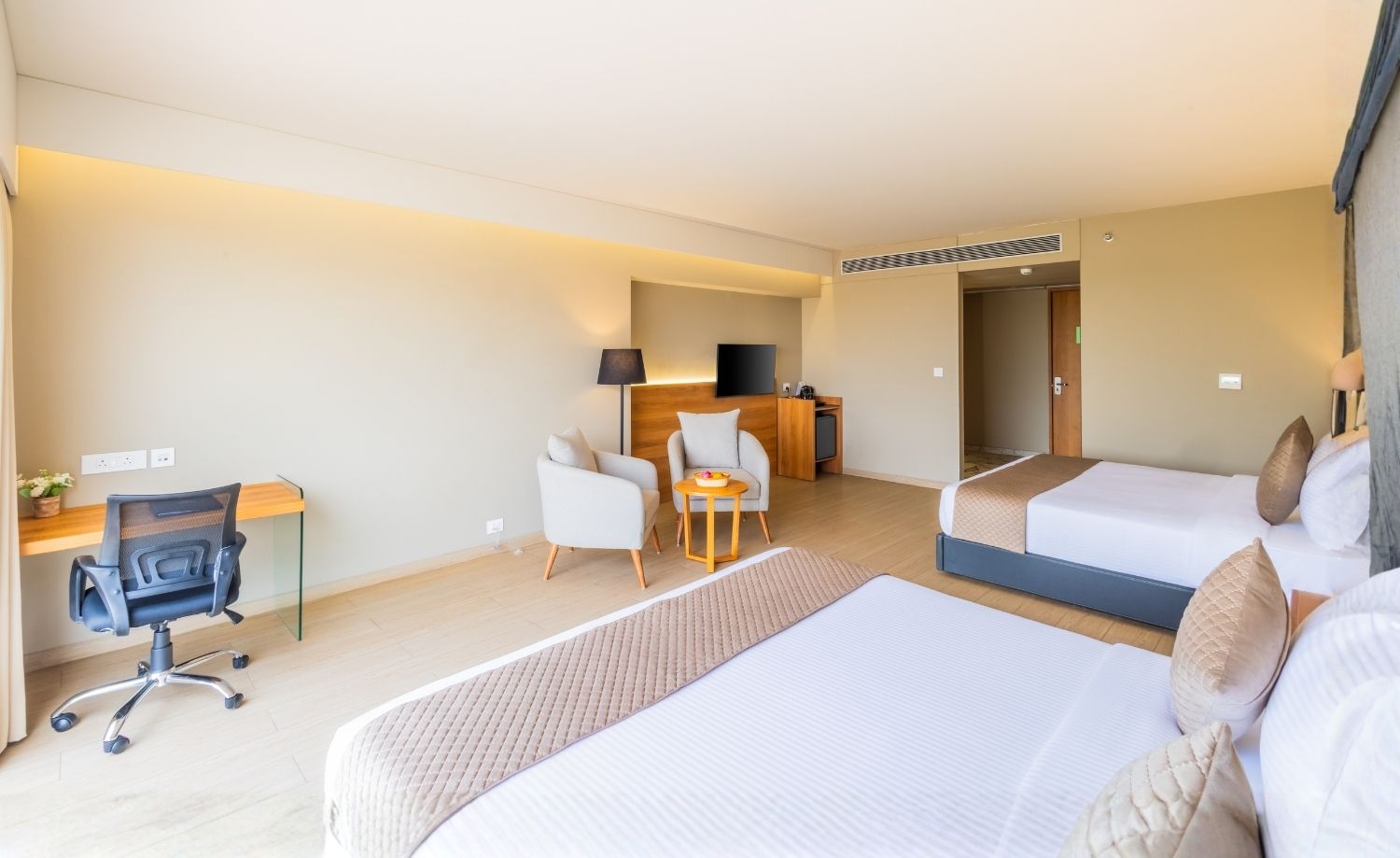 Experience comfort and togetherness in our Family Room, thoughtfully designed to provide a relaxing and memorable stay for families. The spacious room features comfortable bedding arrangements with premium linens and soft pillows, ensuring a restful experience for every guest.